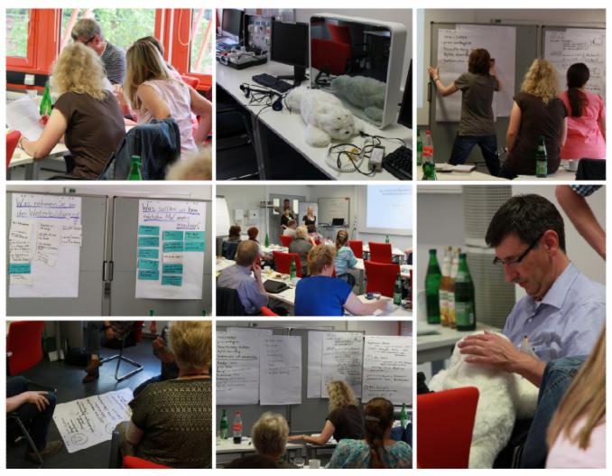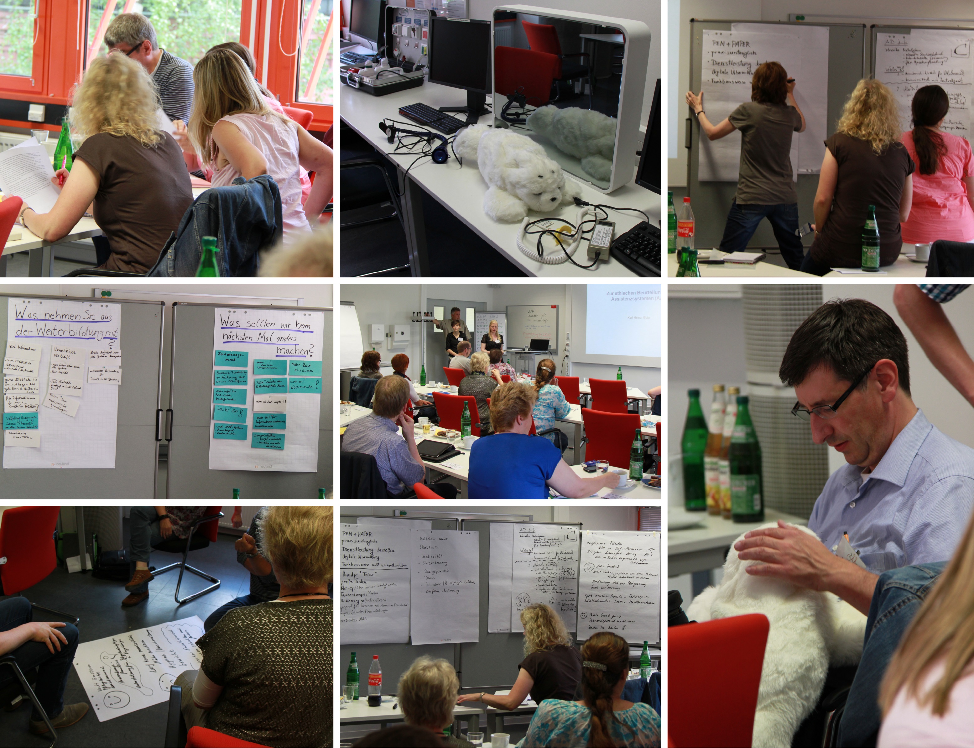 Mit 18 Teilnehmenden fand vom 10. Mai bis zum 12. Juli 2014 die Weiterbildung das erste Mal statt. Für drei Tage kamen Organisatoren, Dozenten und die Teilnehmenden in den Räumlichkeiten des Fachgebietes Mensch-Maschine-Systemtechnik zusammen. Zu sechs Themeneinheiten wurde Wissen vermittelt, das selbstständig in Kleingruppen angewendet und vertieft wurde. Zum Austauschen und Diskutieren lud eine Ausstellung ein, in der viele Praxisbeispiele gezeigt wurden. Die Teilnehmenden waren größtenteils sehr zufrieden mit der Weiterbildung, was durch die hohe Anzahl an positiven Feedback-Karten zu schlussfolgern ist. Es war eine sehr schöne und intensive Zeit mit erfrischenden Diskussionen und einem regen Austausch. Zur Zeit werten wir die Fragebögen der Teilnehmenden aus. Wir freuen uns mit Hilfe der Ergebnisse unsere Weiterbildungsmaßnahme "noch besser" zu machen und im Winter-Frühjahr 2015 die überarbeitete, perfektionierte Maßnahme erneut anbieten zu können.